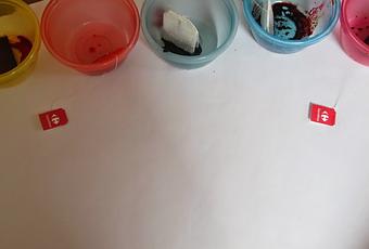 Après avoir choisi mes couleurs, j'ai mis un sachet de thé dans le liquide pour qu'il l'absorbe et que Lola puisse peindre avec. Elle était super contente de faire une activité car depuis quelque temps on en fait moins mais je suis débordé! Elle a adoré pouvoir dessiner autrement que d'habitude, au début elle tenait par la ficelle mais elle a vu que ça ne marquer pas beaucoup donc elle a pris par le sachet et elle s'en est mis de partout.