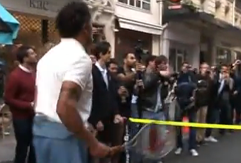 A quelques jours du début de Roland Garros, le Coq Sportif a mis ses deux ambassadeurs français à contribution lors d’un petit match devant leur magasin de Montmartre, en pleine rue!