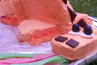 Il y a quelques temps, mon père a participé avec son association à un festival de dragon boat ... Késaco ? Il s'agit d'un sport de rame, traditionnellement par équipes de 20 personnes qui avancent au rythme d'un tambour sur une embarcation coiffée d'une jolie tête de dragon ... Pour l'occasion, chacun était invité à ramener quelque chose pour le buffet du midi. Et comme l'occasion ne pouvait pas mieux s'y prêter, je me suis proposée de réaliser un joli dragon cake ... Qui a, je dois dire, remporté un franc succès !