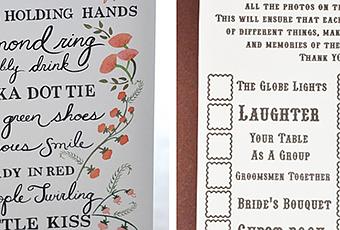 Comme chez nos amis outre-atlantique, organisez un « I spy » ( je vois, je photographie ). Cela consiste à écrire des instructions sur un carton, du type « je vois une femme avec une robe rouge, je vois des gens qui s’embrassent, je vois un gros diamant etc ». Le but c’est que vos invités les photographient. Tout le monde peut y participer même les enfants et cela vous permettra d’avoir différents clichés de la soirée (et ainsi éviter d’avoir 15 fois un plan du buffet).