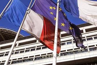 Des drapeaux français et européen devant le ministère de l'Economie et des Finances. ©A.GELEBART