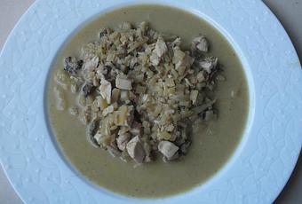 Lors de mon périple bordelais, j'étais tombé en pamoison devant des "Noirmoutier comme un risotto" (ICI) avec de la truffe et du parmesan. Vraiment à mourir. Je n'avais qu'une seule idée. En faire à mon tour. N'ayant pas de truffe et pas vraiment l'intention d'en acheter, je me suis contenté de morilles séchées. Et puis il se trouve que j'avais du vieux comté (été 2011). Et même un peu de vin oxydatif dans mon frigo. Bref, de quoi faire une chouette recette :-)