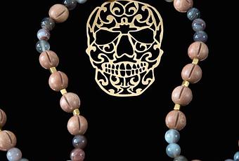 Ce collier sautoir est vraiment une très belle pièce et le pendentif en plaqué or est d'une finesse ! Et puis, comme vous le savez, j'ai une fascination profonde pour les crânes, autrement appelés vanités et pour leur symbolique forte.