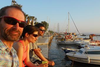 Ce n'est évidemment pas la première fois que Suze, Istvan et moi nous retrouvons ensembles à l'étranger, nous tentons de faire coïncider nos séjours et projets de voyage quans la chose est possible. Mais nous n'avions pas voyagé ensembles tous les trois à l'extérieur de l'Amérique du Nord depuis l'été 2011, où nous avions traversé une partie des Balkans et de la Hongrie. C'est donc avec plaisir que j'ai retrouvé mes deux complices de voyage à Selçuk, en Turquie, après deux jours de déplacements qui m'ont menés, en bateau, en avion et en train, de Venise à Rome à Istanbul, Izmir, et enfin Selçuk.Même si je reviendrai bientôt au pays et que cette incursion turque ne me permettra essentiellement que de visiter Istanbul et quelques sites majeurs, nous avons quand même improvisé ensembles un petit détour sur une île Grecque.