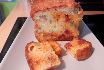 Voici un cake salé que nous avons beaucoup apprécié. Je l'ai réalisé pour un apéritif en famille.