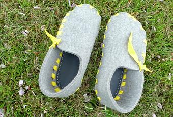 Un titre taquin mais vraiment pas méchant puisque je suis fan de mes nouveaux chaussons livrés par surprise à la maison. (merci merci merci)Des chaussons pas sexy pour un sou mais confort à souhait et ludiques aussi puisqu'il faut les assembler soi-même.Tel est le concept de Lasso : un chausson "do it yoursellf ", fait d'une seule pièce de feutre de laine , une semelle en cuir véritable et d'un lacet de la couleur de votre choix.