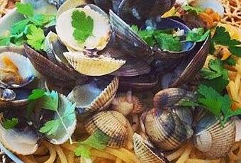 Dans une grande casserole/marmite, faites venir une grande quantité d'eau à ébullition, ajouter une grosse pincée de sel et plongez-y les pâtes. Respectez le temps de cuisson pour une cuisson al dente (11/12 minutes)En parallèle, à feu moyen, faites chauffer un peu d'huile d'olive dans une grande poêle et ajoutez les coquillages (j'ai choisi de faire moitié palourdes, moitié coques pour 2 raisons: les coques sont des coquillages un peu plus iodés, et moi l'iode, j'adore + ça coûte 2 fois moins cher que les palourdes...mais les puristes pourront faire la même chose avec 100% de palourdes naturalmente).Ils vont s'ouvrir tout doucement après quelques minutes de cuisson et commencer à recracher leur jus, ça sera le moment de rajouter l'ail émincé + une cuillère à soupe d'huile et enfin le vin. Salez, poivrez.
