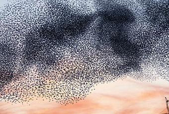 Murmurations, est une Sculpture en plastique éphémère du photographe français Alain Delorme. Vous avez déjà vu ces magnifiques photos de vol d’oiseaux —appelé murmuration— qui tournoient dans le ciel. Et bien… le photographe Alain Delorme a re-créé ces chorégraphies avec des sacs en plastique, en partant du constat que les sacs aussi s’envolent dans le ciel et font de belles images… mais avec d’autres conséquences. Une façon de mettre la lumière sur un vrai problème environnemental.