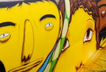 A quelques jours du début de la coupe du monde, des frère jumeaux et artistes brésiliens ont réalisé avec 1200 bombes de peinture une fresque gigantesque de l’équipe officielle du Brésil.