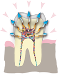 L’existence du flux dentinaire est le garant de la bonne santé de la dent. Une dent soignée dont le flux dentinaire reste bloqué est vouée à se carier à nouveau à plus ou moins
