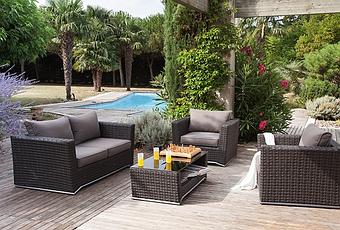 Si vous imaginez votre salon de détente "outdoor" avec un look ultra contemporain, l'ensemble de jardin canapé + table Cannes gris devrait vous séduire. Conçu en résine tressée et en aluminium, ce salon plein air bénéficie d'une structure en "fil de fer" tout à fait insolite. C'est un salon outdoor inédit et indémodable qui a le mérite de vous garder au frais ! Prix : 799€