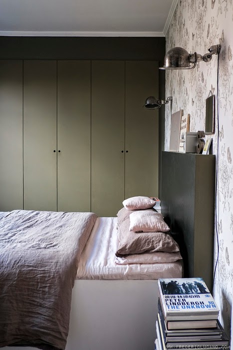 Je partage le goût de Clémence pour le kaki en déco. Je l'aime plutôt grisé mais ici, dans cette maison de l'île de Ré, le résultat est superbe. Turbulences déco.