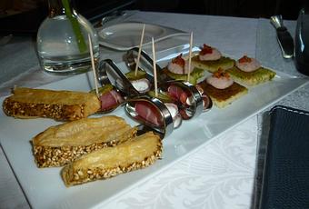 Notre premier plat est un saumon cru, en carpaccion ou pour d'autres une terrine de canard au foie gras.