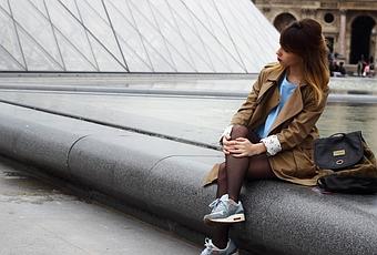 Pour ce look j'ai choisis de faire simple, trench / tee-shirt / short / baskets avec quelques touches de bleu !