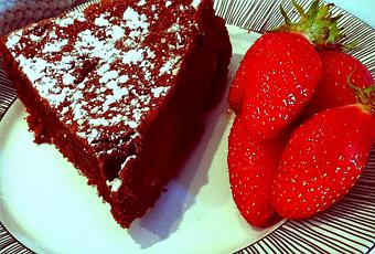 Le gâteau ne doit pas être tout à fait cuit sur le dessus et quand on plonge un couteau.