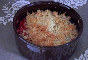Comme Nanou, j'ai repris la recette du crumble aux fraises et noix de coco de Marianne.