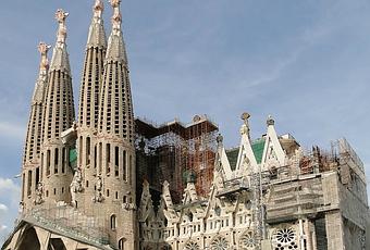 La Sagrada Família, (Temple Expiatori de la Sagrada Família de son nom complet en catalan), est une basilique catholique érigée à partir de 1882. C’est l’un des exemples les plus connus du modernisme catalan (Art Nouveau) et un monument emblématique de la ville. Œuvre inachevée de l’architecte catalan Antoni Gaudí, la Sagrada Família est le monument le plus visité d’Espagne. Puisqu'il s'agit d’un temple expiatoire, les travaux sont exclusivement financés grâce à l’aumône. En conséquence, il n’a pas été possible de construire simultanément les différentes parties du monument lorsqu’il l’eût fallu, mais depuis les années 1990, l’affluence de visiteurs et le renom mondial de l’œuvre ont fait évoluer la situation économique.
