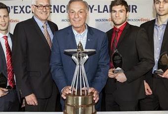 Instauré en 1985, le programme d’encouragement à l’excellence sportive et académique souligne les performances d’un joueur des trois principaux circuits de hockey amateur du Québec, soit la LHJMQ, le hockey universitaire québécois, ainsi que la Ligue de hockey junior AAA du Québec.
