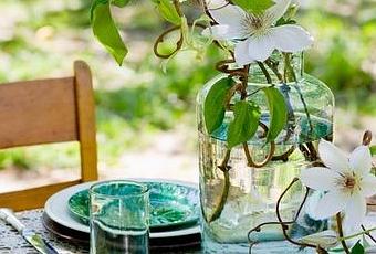 Quelques astuces : chiner autour de vous. Sur la plage, à la campagne, trouvez des éléments qui rappellent votre environnement comme des galets, du sable (pour mettre dans des vases) ou des morceaux de bois flotté, par exemple. Optez pour des matières estivales ; des éléments simples et naturels, comme des paniers tressés ou des sets de table customisés. Placez des fruits et des fleurs, éclairez la table avec des lanternes de jardin et de petites bougies. Soyez créatifs et utilisez ce que vous avez déjà chez vous.