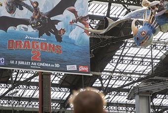 Du 5 au 11 juin 2014, le hall 1 de la Gare de Lyon devient le terrain de jeux des héros du film des Studios Dreamworks Animation, Dragons 2. Après avoir foulé le tapis rouge du Festival de Cannes, Harold et Krokmou reviennent cette fois-ci dans les airs et entourés de leurs amis pour prendre leurs quartiers à Paris. De quoi plonger les passants dans l’univers fantastique du film…