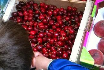 Voilà une box avec un super programme. Son but faire découvrir aux petits : un fruit, en l'occurrence la cerise, avec un petit parcours découverte. L'enfant doit aller au marché et poser trois questions sur l'origine de la cerise et ses propriétés. Chez nous, sur le marché ce fut un peu un flop, le primeur n'a pas trop su lui répondre heureusement wikipédia était là.