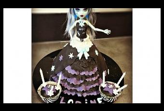 Un nouveau gâteau ayant pour thème les Monster High : le gâteau poupée pour l’anniversaire de ma fille avec ses copains/copines à la maison.