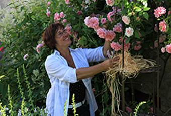 Dans ce jardin débordant en juin, de fleurs vivaces et de roses, Pascale invite peintres, musiciens et pépiniéristes pour animer ces jours de fête.
