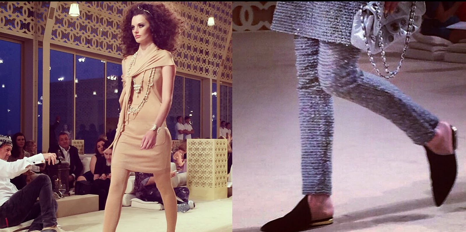 Pour sa collection croisière 2014-15, la maison joue gros: construction d’un palace digne des contes des mille et une nuits sur une île déserte, au large de Dubaï, pour accueillir l’événement. Lors du défilé, le 13 mai dernier, babouches, tuniques colorées à motifs, bijoux argentés, maquillage sombre, feuilles d’or; tout éblouissait.