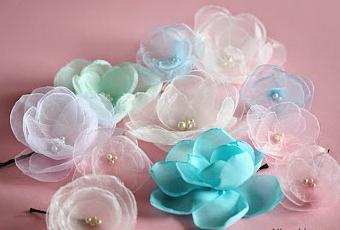 Ces dernières semaines, j'ai consacrée beaucoup de mon temps a réaliser des fleurs en taffetas , en mousseline et en organza pour des futures mariées....