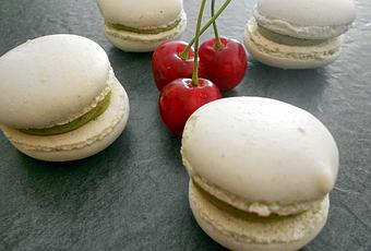 - Déposer du crémeux sur la moitié des coques et y enfoncer un petit morceau de confit puis recouvrir de crémeux.. Recouvrir d'une autre coque de macaron et appuyer légèrement.