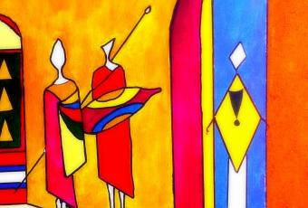 L'Afrique est un sablier rempli de sable bleu, le sable s'écoule depuis la nuit bleue des temps et un chien bleu regarde le sable bleu s'écouler lentement. De grands orages bleus déversent rarement une pluie douce et bleue qui remplit les rivières et les fleuves d'Afrique. Des enfants jouent et des femmes sont femmes, dignes et belles. Les hommes s'interrogent souvent, sans réponse. Le chien bleu passe de village en village, de case en case, parcourt la terre d'Afrique, montagnes, forêts et savanes, il ne cherche ni n'espère rien. Il porte sa présence bleue à tous. Et les enfants, les femmes et les hommes d'Afrique savent que le chien bleu veille sur eux.