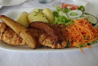 Le plus souvent il est servi pané et frit accompagné de bananes. En voyant ce poisson frit, je m'attendais à un plat lourd mais en fait pas du tout, c'est un plat délicieux qui fond en bouche, un vrai coup de coeur.