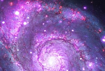 La magnifique galaxie du Tourbillon (M51) se livre dans un portrait composite associant des centaines d’heures d’observation des télescopes spatiaux Hubble et Chandra.