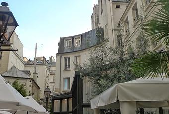 Bien avant de créer ce blog, j'entretenais déjà une curiosité toute particulière pour découvrir des endroits cachés à Paris. Depuis 2 ans, cette curiosité bien placée en est devenue maladive. Alors, quand je reçois un mail m'invitant à découvrir l'un des plus grands jardins à ciel ouvert de Paris au coeur du Marais, je fonce ! (oui mais non puisque ce jour là j'ai crevé avec ma titine donc foncer est un bien grand mot, mais là je m'égare). Toujours est-il, que je n'ai pas été déçue du voyage. Et ce, dès mon arrivée à la Terrasse des Jardins du Marais. Imaginez une cour privée de 1500 M2 où vous pouvez déjeuner, bruncher et boire un verre à l'abri de la circulation des voitures et des passants...et pas la peine de vous pincer, ceci n'est pas une farce. Voilà sans doute, l'une de mes meilleures trouvailles du Printemps, quoique si les giboulées de mars