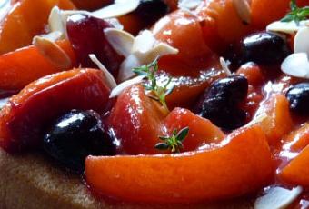 Pendant ce temps, rincez et coupez les fruits (abricots et nectarines) en quartiers, les cerises en deux (retirez le noyau).
