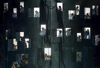 D’abord, elle nous permet de voir le travail d’un jeune metteur en scène dernière génération des scènes allemandes, David Bösch, qui fera l’an prochain toujours à Lyon Die Gezeichneten/les Stigmatisés de Franz Schreker), un travail peut-être pas totalement abouti, mais fermement mené, avec des intentions claires, et de très bonnes idées.