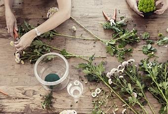 Florist Louise Moestrup had brought lots of beautiful flowers and taught us the art of making flower arrangements.