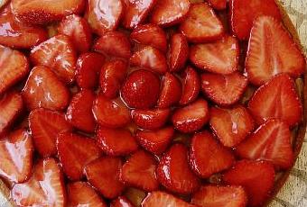 Montage : Etalez la crème pâtissière sur votre fond de tarte. Calibrez vos fraises et coupez-les en deux. Disposez-les face coupée visible en commençant par la bordure extérieure et par les plus grosses fraises et finir le cercle avec les plus petites fraises coupées. Réservez au frais et sortir du frigo 1/2 heure avant dégustation.