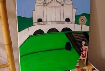 Ma toile en cours depuis pas mal de temps est enfin terminée. Elle a même eu droit a un joli rayon de soleil le premier matin après son accrochage…