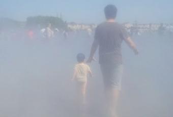 1/ On s’est bien rafraîchit au miroir d’eau dimanche dernier. C’est vraiment un lieu super. J’ai toujours autant de plaisir à m’y arrêter que ce soit avec ou sans Mouette. Mouette (et tous les enfants d’ailleurs) adore se tremper et courir dans la brume d’eau.