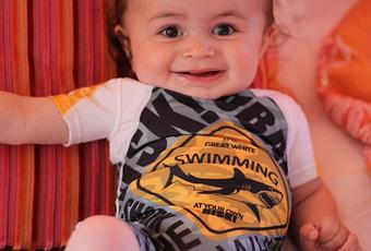 Nous on est vraiment fan du maillot de bain de Baby Milan, qui lui donne un vrai look de petit surfeur australien !