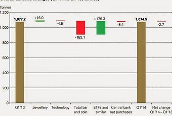 Tableau issu du World Gold Council, Gold Demand Trends Q1 2014