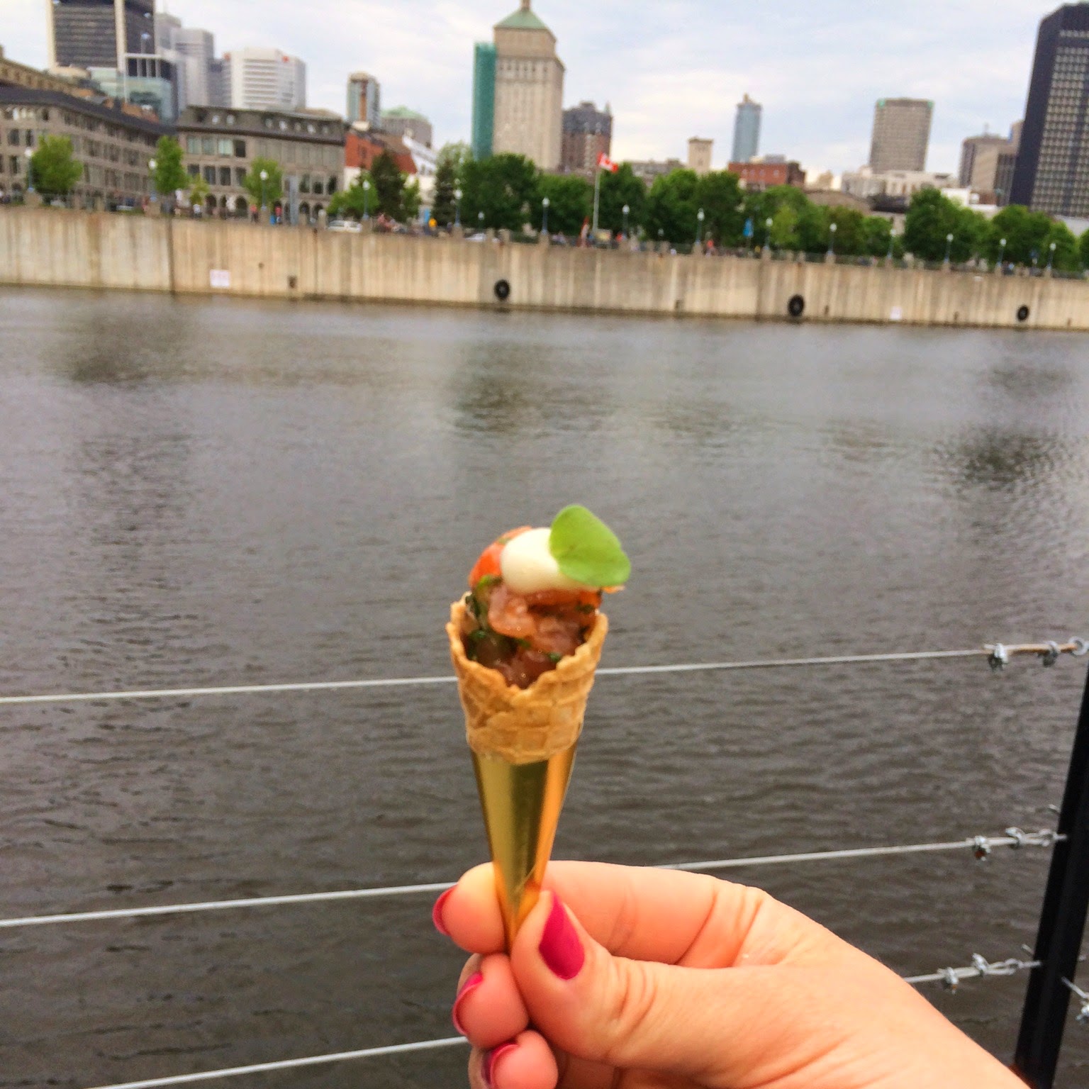 #GvntQcJ'ai eu la chance inouïe de me rendre au Bota Bota spa-sur-l'eau, à Montréal, pour y découvrir une panoplie de produits issus de l'industrie québécoise de la pêche et de l'aquaculture. L'endroit en lui-même était enchanteur, et le menu proposé s'annonçait exquis. Un ilôt y est installé, sorte de station culinaire où l'on nous démontre combien il peut être simple d'inclure les crustacés du Québec dans notre assiette. Je suis illico impressionnée par les rouleaux de printemps au homard, siiii délicieux. Ci-haut, le menu élaboré par Émilie Rizetto, de l'Auberge Saint-Gabriel, et David Fiore, du Bota Bota spa-sur-l'eau. Les chefs nous ont présenté une variété de succulentes bouchées mettant en vedette les derniers arrivages québécois. Supportés par une dégustation de vins du terroir, les poissons et les fruits de mer du Québec nous ont ainsi dévoilé leurs charmes! Miam!S'ensuit une présentation de Chantale Fontaine, qui nous entretient sur l'importance d'encourager les travailleurs de la mer du Québec. Elle nous fait entre autres réfléchir sur le nombre de familles impliquées et touchées par le développement économique des produits aquatiques du Québec, de l'estuaire du Saint-Laurent jusqu'à leur arrivée dans l'assiette des consommateurs On n'insistera jamais assez sur l'importance de mettre le cap sur la découverte de produits aquatiques du Québec. Il ne faut surtout pas hésiter à en faire la demande dans les poissonneries et les supermarchés!Bon appétit!Alexïs xoRédactrice en chefNaNa Toulouse