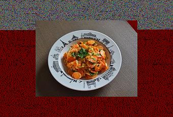 Quand vos légumes sont égouttés, placez les dans 2 poêle différentes avec un peu d’huile d’olive, les fèves telles quel et les carottes coupées… rajoutez une pincée de la poudre de curry… je m’arrête 1 minute sur cette trouvaille, car j’en ai testé plein et là, là je crois que j’ai trouvé une merveille, la poudre s’appelle Madras Curry Powder de la marque Sun Brand, en direct d’Inde… et on la trouve à Biarritz !!! Chez Arostéguy (bien sûr !)