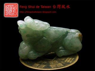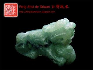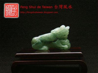 Voici un jolie petit Pi Xiu en jade qui joue avec toutes les variantes du vert, du plus foncé au plus clair.