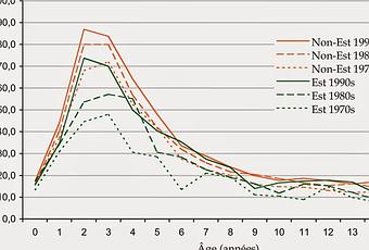 Nous avons inclus 556 (13%) des 4329 sujets de la cohorte traités pour une leucémie lymphoblastique aigüe. La durée médiane de suivi des survivants 5 ans après le diagnostic était de 18.4 ans (tessiture : 0.0-33.0). 25 (5%) des 556 participants sont décédés (taux de mortalité standardisé 3.5, Intervalle de Confiance -IC- 95% 2.3-5.0). 16 (57%) décès était dus à des causes différentes de la leucémie lymphoblastique aigüe comme telle. Six (1%) survivants ont développé une néoplasie maligne par la suite (taux standardisé d’incidence 2.6, IC 95% 1.0-5.7). 107 participants (IC 95% 81-193) dans chaque groupe ont montré un besoin de suivi d’une année supplémentaire, pour observation d’un trouble de santé chronique supplémentaire dans le groupe survivants, en comparaison du groupe jumeau. 415 participants (376-939) dans chaque groupe ont montré un besoin de suivi d’une année supplémentaire du fait d’un trouble supplémentaire grave, menaçant la survie, ou fatal dans le groupe des survivants. Les survivants n’ont pas montré de différences pour ce qui est de leur niveau d’éducation atteint, du taux de mariage, ou d’indépendance de vie, en comparaison de leurs jumeaux.