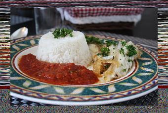 Dressez le riz en le moulant dans un ramequin, ajoutez le poisson et la sauce réduite, dont vous aurez au besoin rectifié l'assaisonnement en sel. Ciselez le persil et répartissez-le sur le plat.