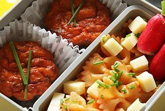 Pour fêter comme il se doit la fête de la musique je vous propose ma première recette bento lunch. Et oui, depuis quelque temps je suis très attirée par le principe. Tant niveau culinaire que niveau esthétique. Je trouve ça très sympa. Ces petits cakes à la tomate peuvent être servis froid ou chaud. J'adore ça et je trouve que ça accompagnet parfaitement une salade de pâte. J'ai ajouté à cette salade des petits dés d'emmental, ciboulette. Puis pour le côté croustillant des petits radis.