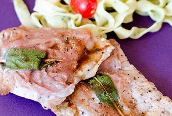 Une tranche de veau, un peu de jambon de Parme, et une feuille de sauge fraiche pour parfumer le tout, il n’en faut pas plus pour se préparer un petit plat délicieux!