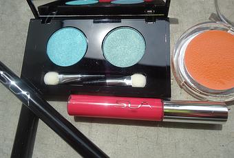 Double-jeuCe blush à la teinte orangée est idéal pour les peaux plus foncées et halées. Sa texture crémeuse, facile à appliquer et longue tenue dépose un voile coloré sur les pommettes. Facile à travailler, il fond rapidement sur la peau. Un fini ultra-naturel pour garder une mine fraîche et lumineuse.Les ombresUn camaïeu des plus tendances pour un look branché : les fards SLA Paris dévoilent une texture micronisée ultra-pigmentée et soyeuse. On craque pour ces tonalités bleutées évocatrices de vacances. Agréables à porter, les fards s’appliquent facilement et de manière homogène.